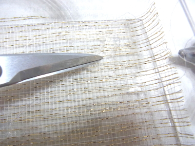 | リボンをカットします。先が穂ずれやすいのでよく切れるハサミでカットしましょう。 | |