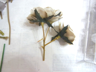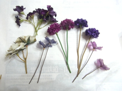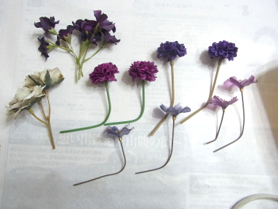 | 残ったお花でコサージュをつくります。 写真のように小分けにします |