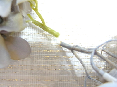 | ポイント 裏面からみて、茎が見えないようにしましょう。見えている場合は奥に留めれば大丈夫です。 |