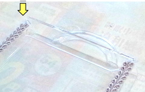 | バックの蓋のラインにそってとめます。線の下にくるようにしましょう | |