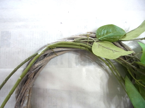 あるいはグルーで固定したところを、葉っぱで巻いてもしっかりつきます。 |