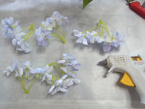 | その他のお花を小分けにして、好きな位置にグルーで固定します | |
