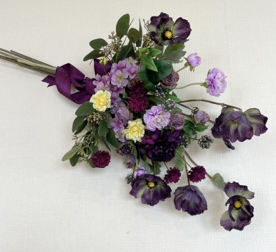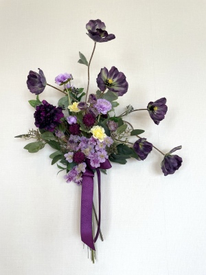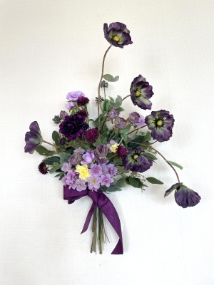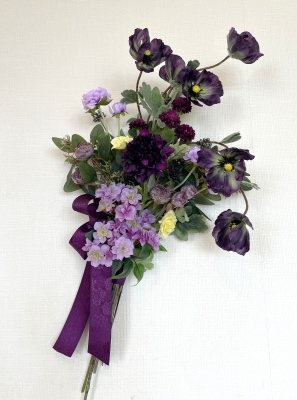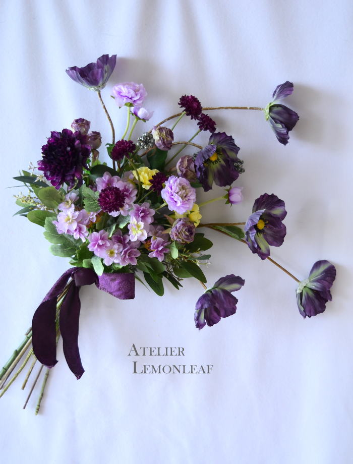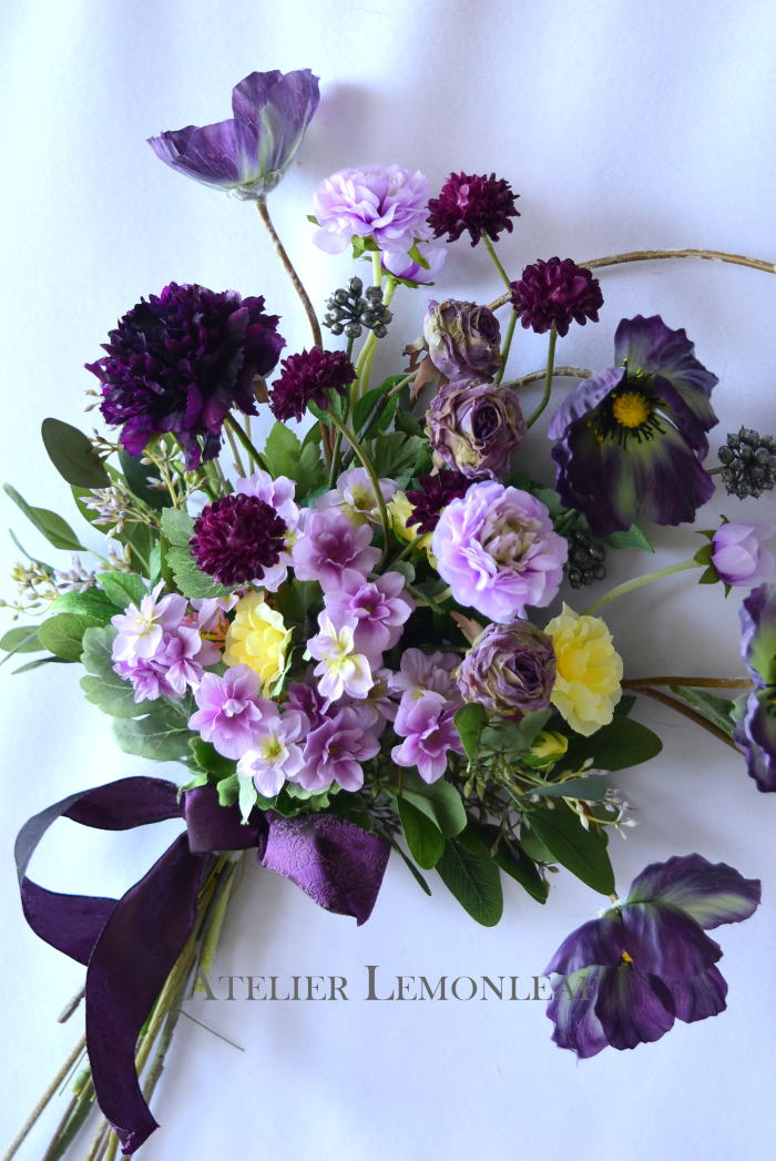 | こんにちは 9月になり、夕方は虫の声がして、秋の気配を感じるようになりましたね。 お待たせしました! 揺れる極上のポピーのエレガントなスワッグです。素材感を楽しんで頂けたら嬉しいです。 魔法のアシストリングで360度好きな角度で飾れます。素敵な表情を何通りも楽しんでくださいね では早速つくっていきましょう。 ポイント 全ての花材をふわっと広げましょう。アーティフィシャルフラワーは、輸送上、畳まれているので、必ず適度に広げて使います。 これを忘れると、空気感のないアレンジになってしまうので、注意しましょう そして作る前に一度全部を、持ってみます。すると量敵なものが把握できます。 最初に、マムを小分けにします。 短いマムに18番ワイヤーを添木、テーピングします。 テーピングはかさなっている部分だけでOKです。 |