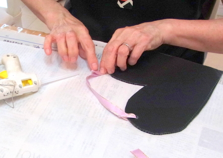 | 輪の大きさはお好みに。裏で、リボンをグルーで固定します。 | |