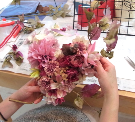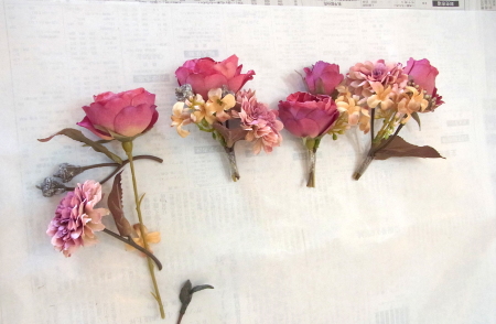 | 小束をつくるときに、余ったお花もトッピングします | |