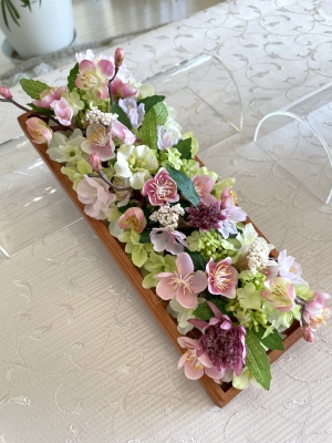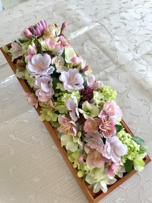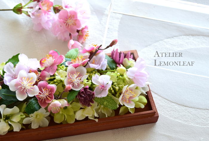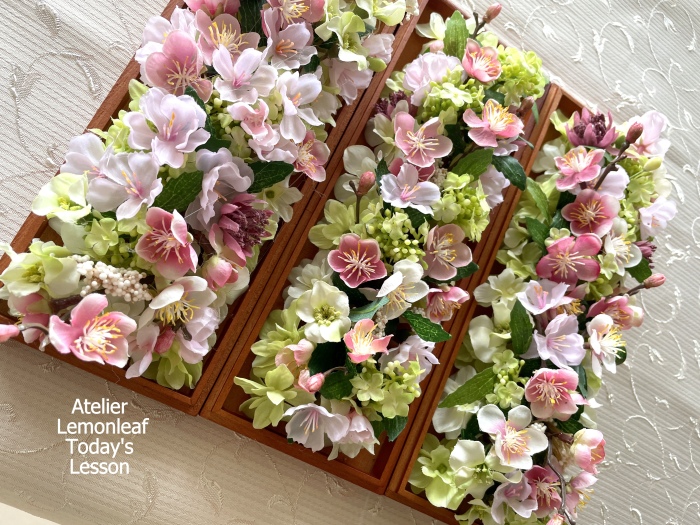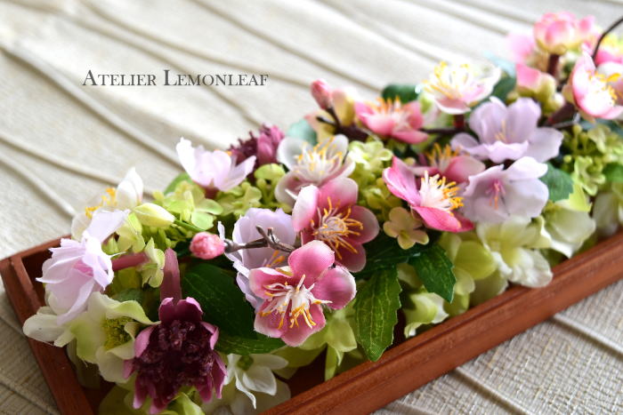 | こんにちは だんだんと寒さもやわらいできましたね! 今月は、梅と桜をタップりつかった春のアレンジです。このままロールケーキになりそうな器、これはこの春 最新モデル☆彡のクレイさんものです。 このようにお顔の近くで眺めるようなアレンジのときは、それにふさわしく まじかでみて価値あるお花かどうかをチェックします。 今回の梅は見事に合格☆彡 小さなお花でありながら、細かいところまでの作りが 精巧で、素敵なお花です。 面倒なフォームもいらないので、是非、のんびり楽しんでつくってみてくださいね! *********** ケースがはいっていた箱はキャリーケースになりますので組み立てておきましょう。 早速、お花を小分けにします。 梅は枝からはカット、アジサイは写真のように1~2輪に細かくします。 コデマリは4点くらいに分けます。 |