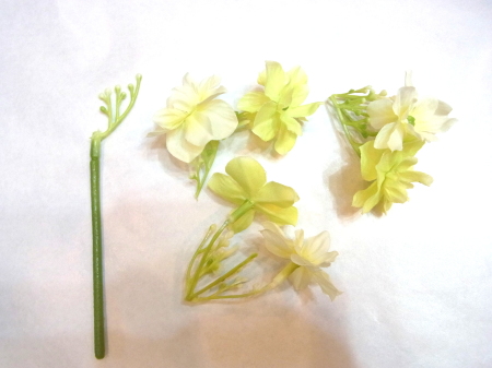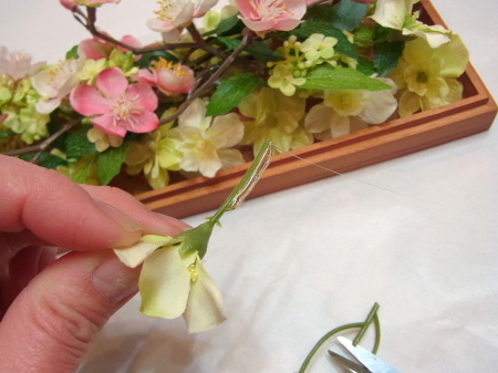| つぼみを見せたいときは つぼみを優先します。その場合、お花が下向きになるものがあったら、カットして、付け直しましょう。 | |