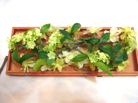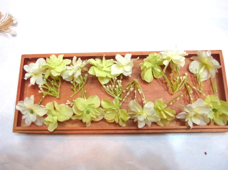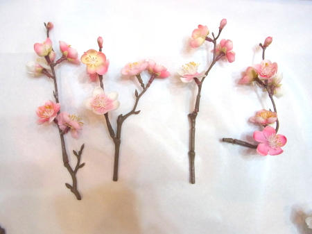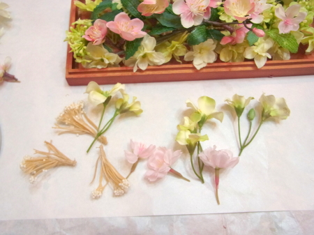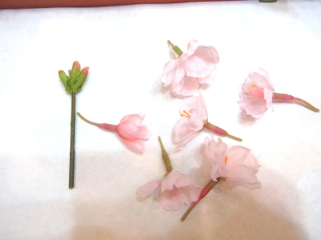 | 桜はヘッドだけにします。3本ありますが、1本だけでも足りることがあるので、残ったら、そのまま別の用途や、ケースの前に添えておかれるのも素敵です。 | |