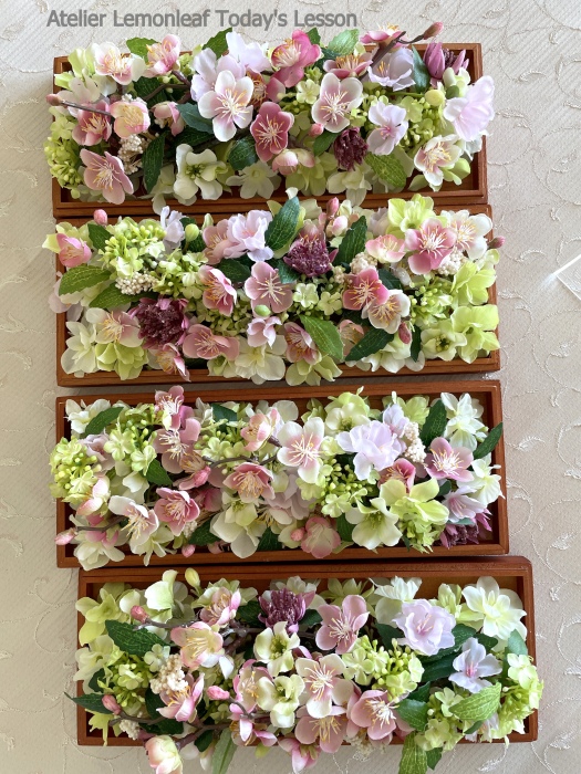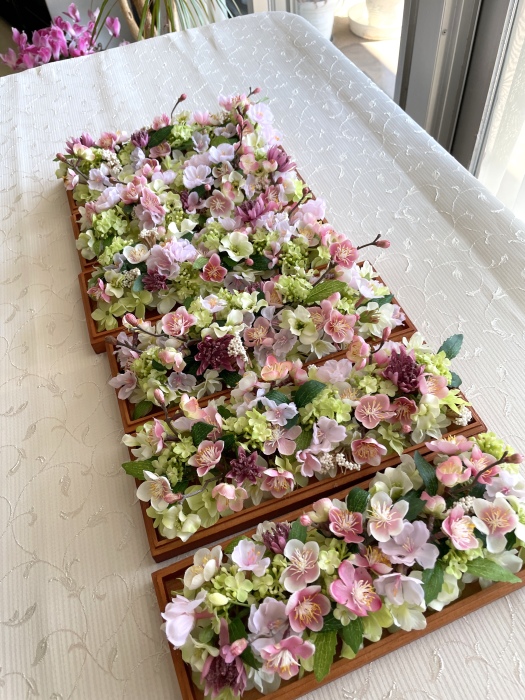 | アジサイを全部、外側に向けて長方形に置いていきますかどもおきます。 | |
