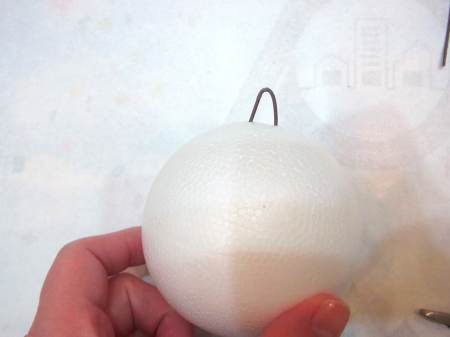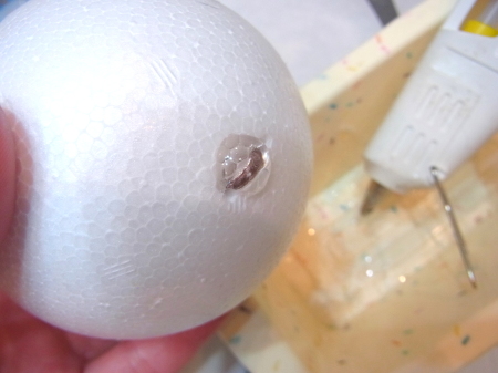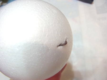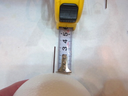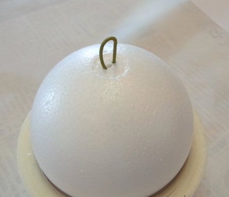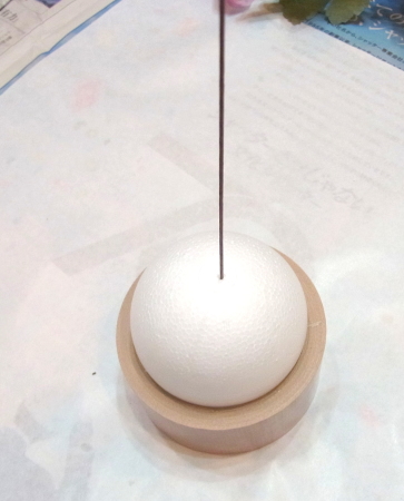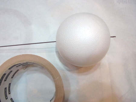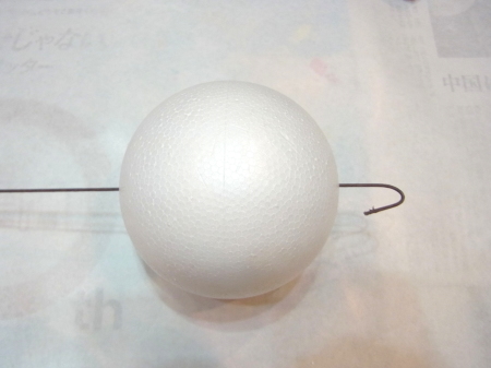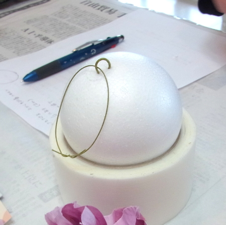 | まるめます。ワイヤーの先端が、素ボールにつくか、少し刺さる程度。 | |