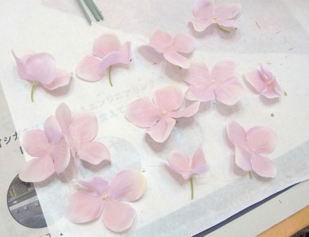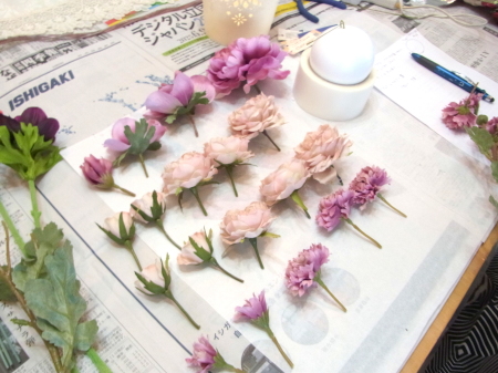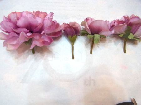 | 3種類のお花をカットして準備します。 | |