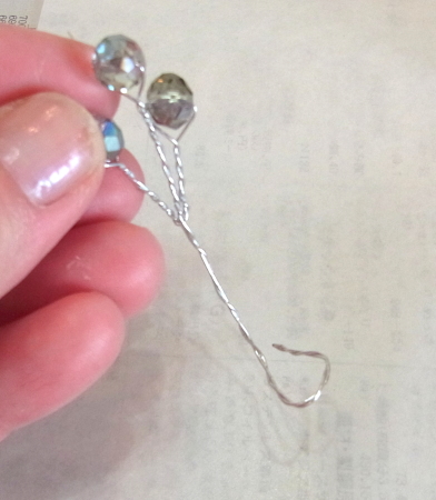 | ここに先にワイヤーを通しておきます。作っているうちに、見失ってしまうので。 | |