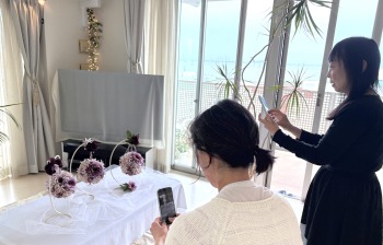 | お花を入れている風景です。 お花が気持ちよく咲いている距離感を。お花とお花の間に、細い通路があるくらいでOK 花びらの下に、別の花を入れないようにしましょう。 インスタ制作風景動画 |