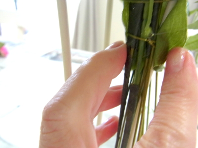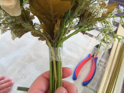 | 同じ場所に上からセロテープで巻きます。 茎を好みの長さにカットしましょう |