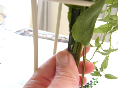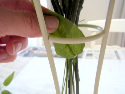 | カットした下の方は、グルーをつけて、アレンジの根本を隠します スタンドの 下のリングの上からさすと ちょうど根元が 自然に隠れます |