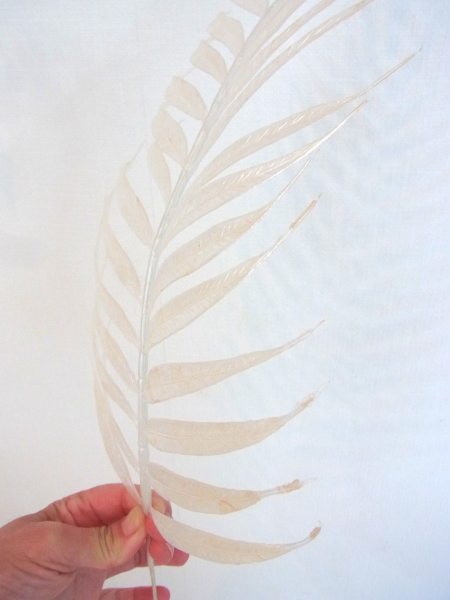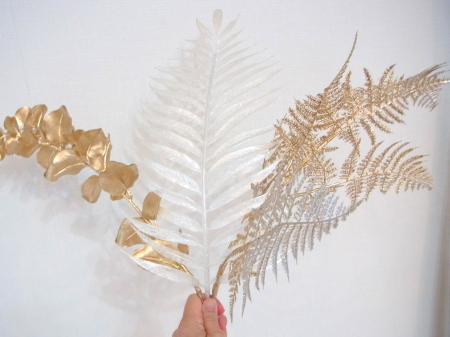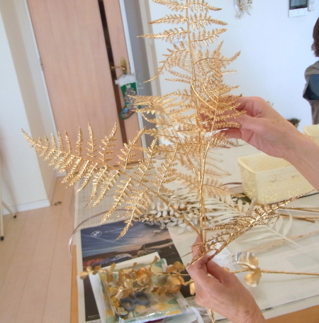 | シダは裏表があるので、チェックしておきましょう。真っすぐでもOKです。 こちらは真っすぐで中央にいれてもよいですし、グイっとカーブさせると、反らせて左右に入れることもできます。 |