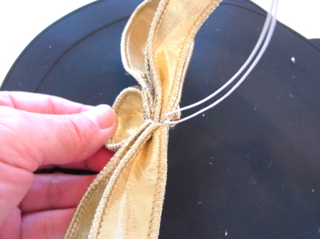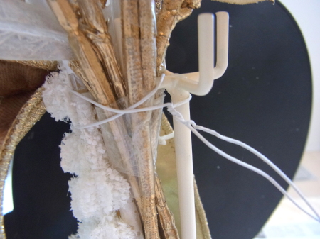 | 花束を固定したワイヤーをスタンドにひっかけます。 | |