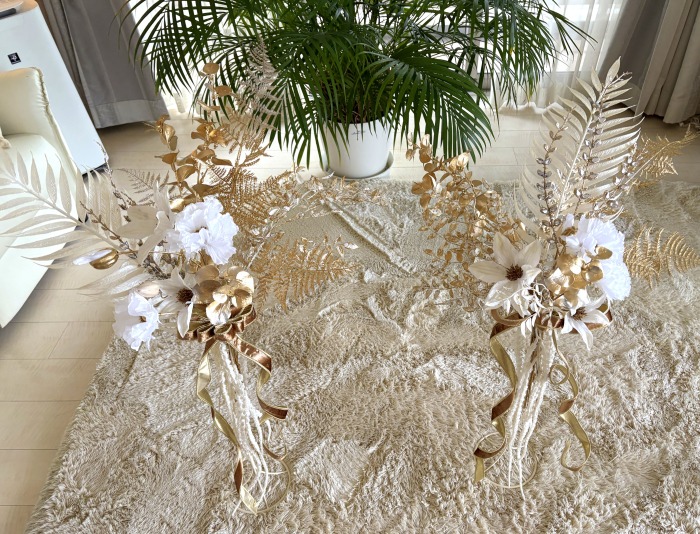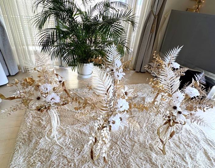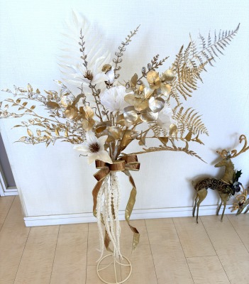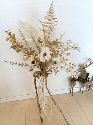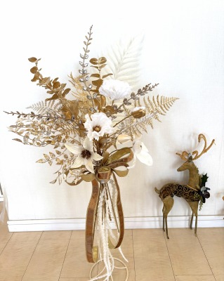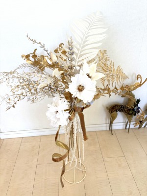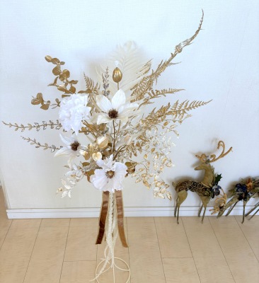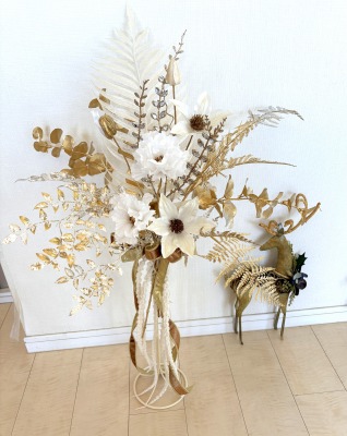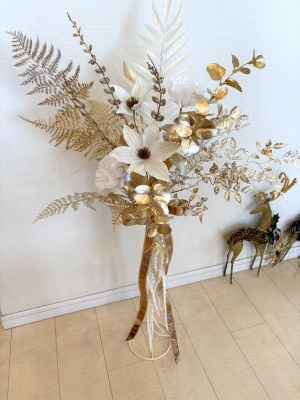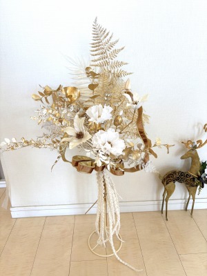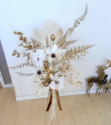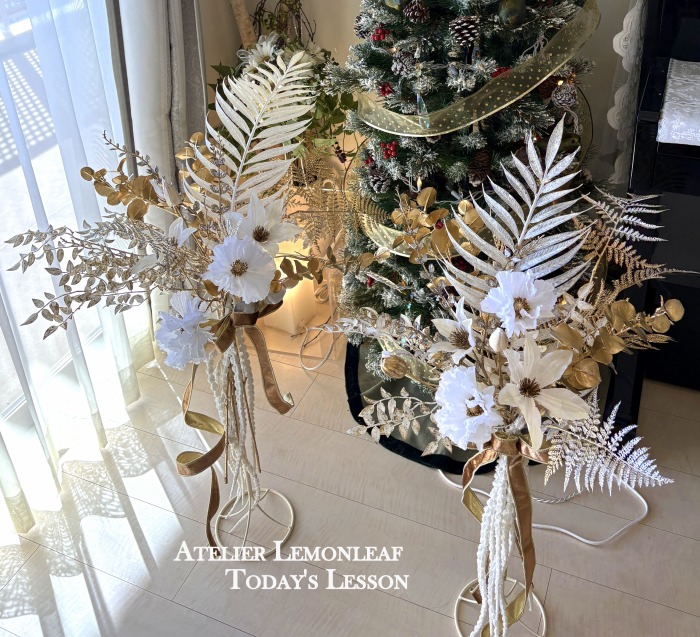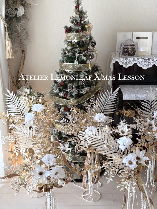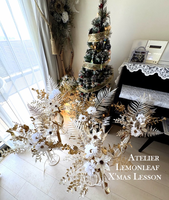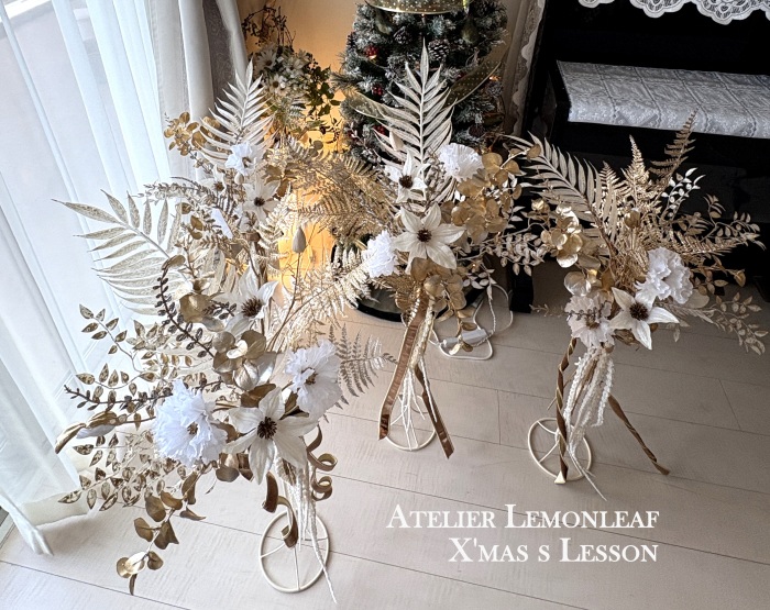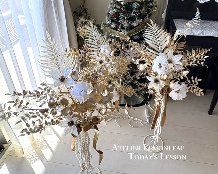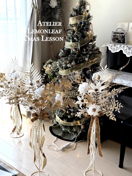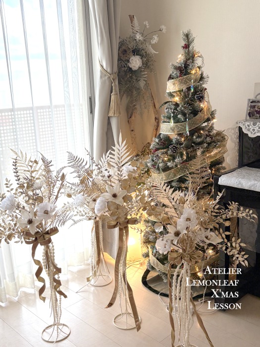 | こんにちは いよいよクリスマスレッスン!です。 今年も残すところわずかになりました。 今年のクリスマスレッスンは、スタンド付で、好きな高さで飾れます。お部屋に置くだけでクリスマスコーナーになる優れものです。ゴールドとホワイトの世界観を楽しんでくださいね! 特に上からみた表情に注目してつくっていきましょう ではスタート! |