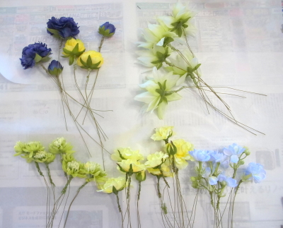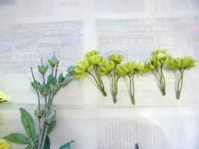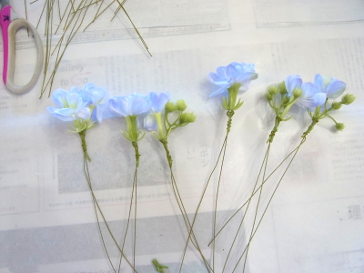 | ラナンキュラスも小分けにしてワイヤリングしましょう | |