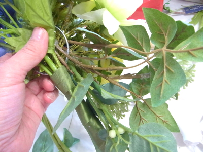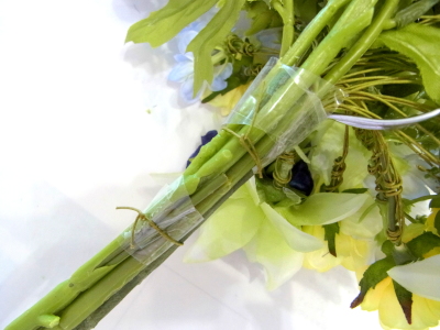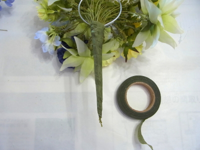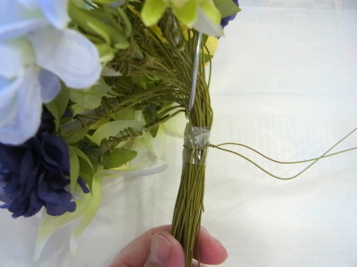 | 先端を軽く切りそろえて、フラワーテープで巻いておきます。 | |