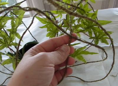 フォームに入れたあとは、いろいろな穴からそれぞれの紅葉の枝を引っ張り出してください。ワイヤーなので好きなカーブもつくれます。