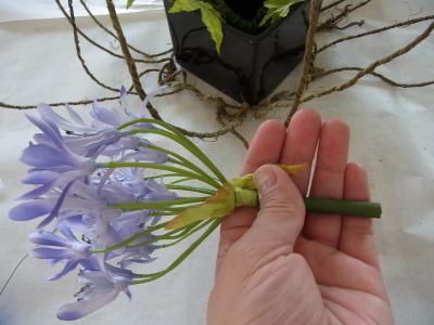 全部花材がはいったら、最初にいれた アガバンサスをチェックしてくだしさい