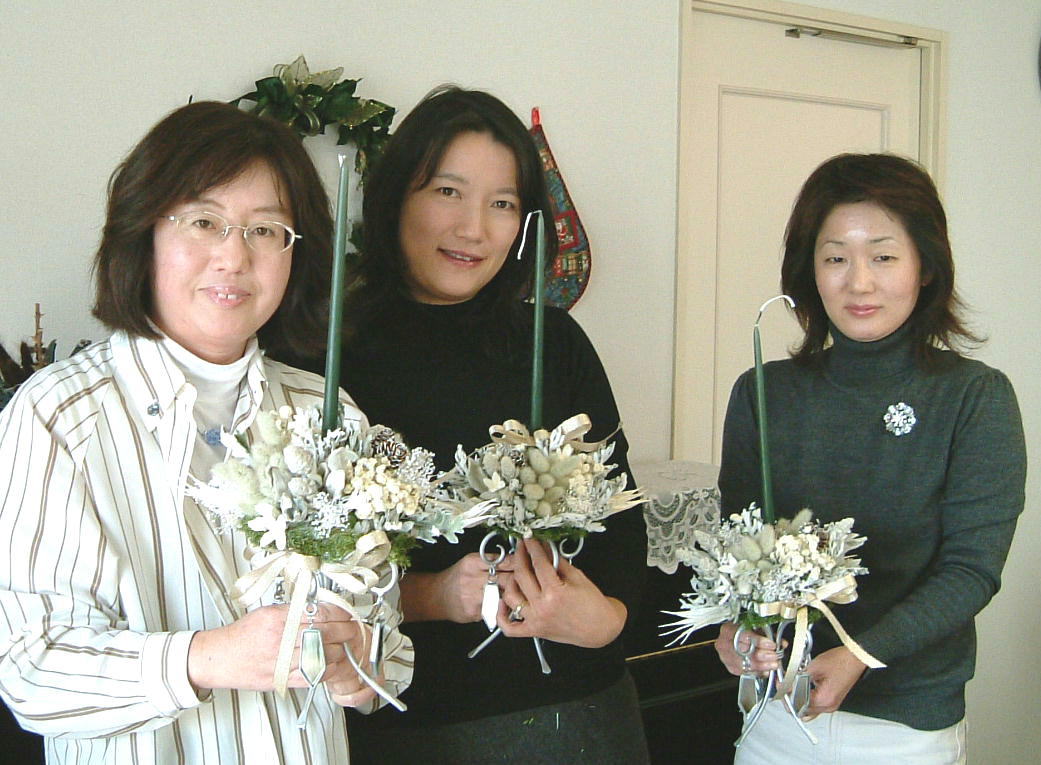 2005年は60名のみなさんと、クリスマスアレンジを作成しました。たくさんの方にご参加いただき、ありがとうございました。できるなら60個のキャンドルを全部ならべてみたいです!