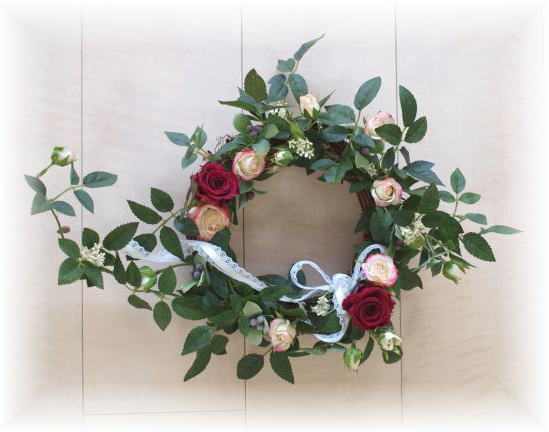 みなさんご存知のとおり、プリザーブドフラワーは本当にしっとりしていて、上品で美しく、顔の近くで眺めて楽しみたい素材です。ただ素材として花のヘッドだけで販売されているので、街でみかけるものはたいてい 足元が隠れるよう、置物タイプが多いです。綺麗なプリザーブド、是非壁かけアレンジも楽しみましょう。アトリエレモンリーフのレッスンでは写真のようなベースをつかった壁掛けアレンジもたくさんご紹介していきます。プ教室ではプリザーブドの葉っぱだけのリースも大人気でした。プリザーブドアレンジも既成概念はすてて、どんどん好みのスタイルにチャレンジしてみましょう